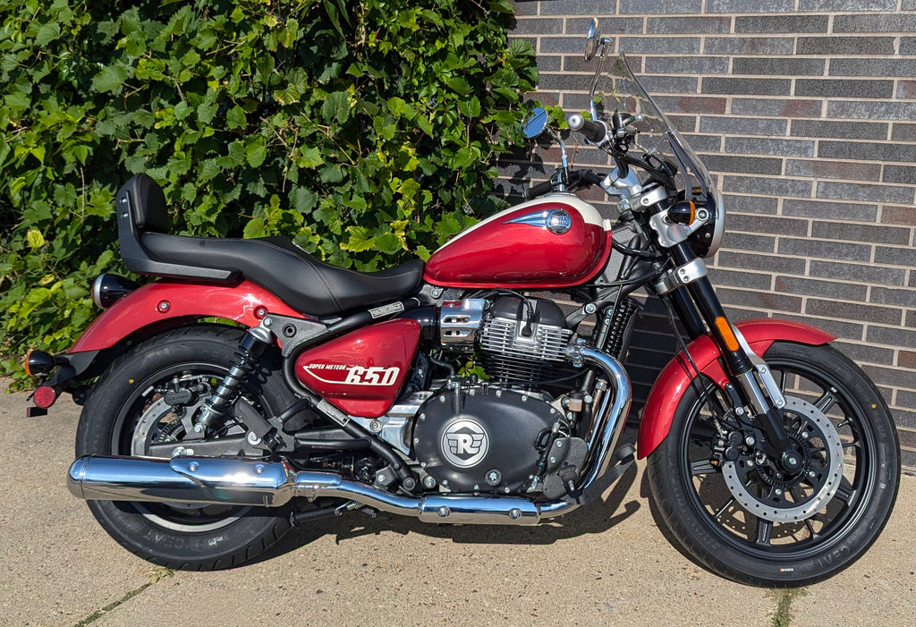 The spacious, teardrop tank on the Super Meteor 650 can carry up to 4.15 gallons of fuel, ensuring that even the longest of rides continues uninterrupted.