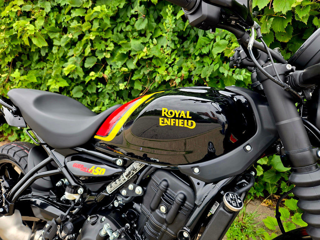 The Royal Enfield Guerrilla 450 has been calibrated by riders, not robots, for real world riding. Made for every rider at every level of riding experience, it delivers maximum sensation and agility, no matter which power band you are in. An upright riding stance, approachable seat height and ultra-responsive chassis make it the perfect machine for everyday, any day riding—from traffic to twisties.